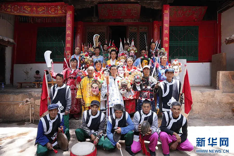 关索戏表演者合影(资料图)。新华网发(阳宗海融媒体中心 供图)