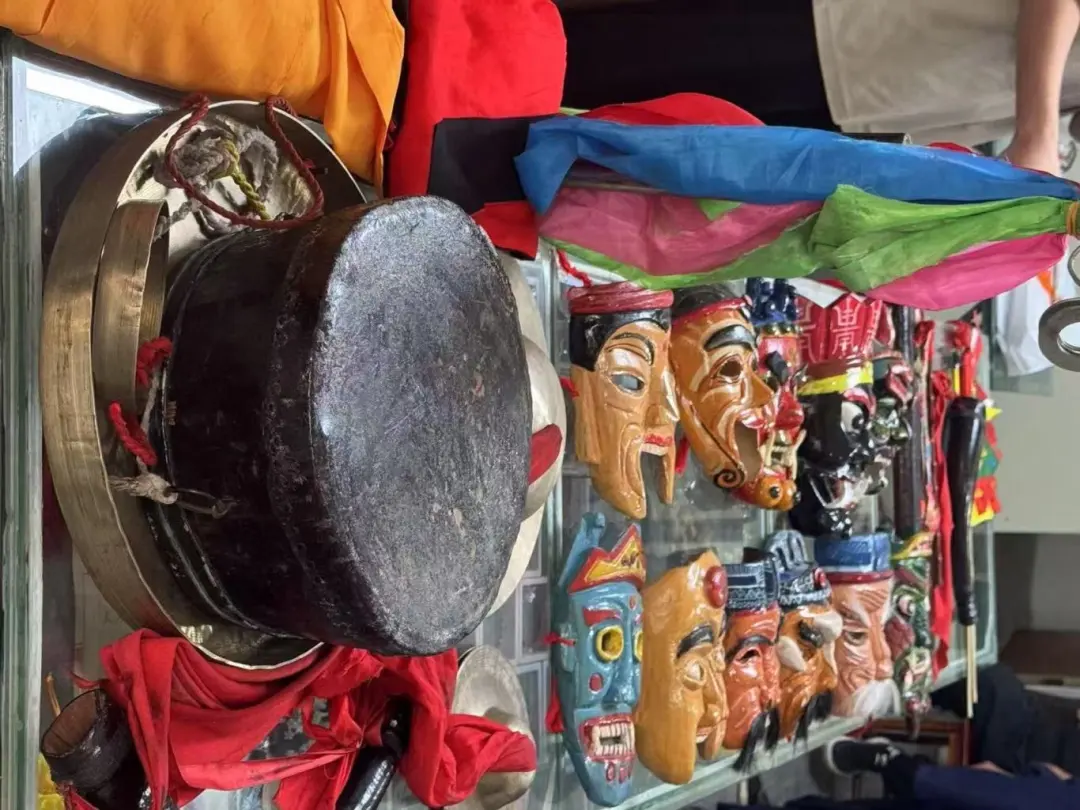 在一处保留着传统祭祀习俗的村落,祠堂内悬挂的神像、案桌上的香炉与墙角的草药晾晒架,共同勾勒出端公戏“酬神娱人”的生存语境。在传承人耐心示范时,队员们认真学习初次体验,虽动作生涩,但能真切感受到端公戏的独特魅力,也更明白了传承保护它的意义。传承人在为队员们完整演出的过程中细致讲解,帮助队员们更好地理解端公戏的文化内涵。